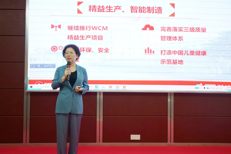 刘景萍董事长引用席大大总书记在2022年博鳌亚洲论坛上的重要讲话勉励全体与会人员,在海南自贸港建设的机遇期,认真学习贯彻落实省第八次党代会精神,坚持党建引领企业发展,将w66旗舰厅药业集团打造成中国儿童健康领军企业。